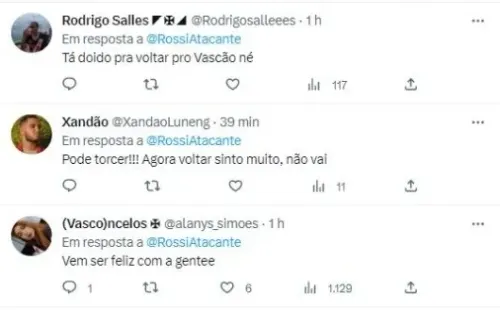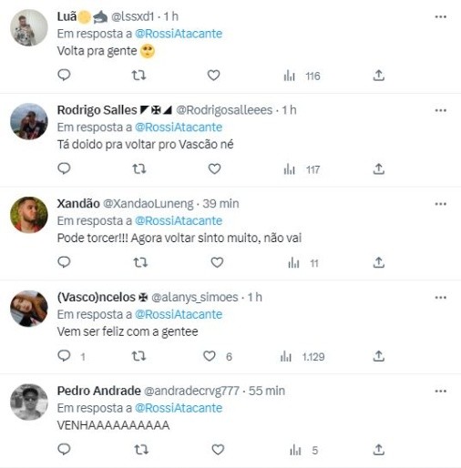 O atacante Rossi, que atuou pelo Vascão em 2019 e atualmente está no Al-Faisaly, da Arábia Saudita, postou um emoji com uma mão, sinalizando os cinco gols aplicados para cima do Resende. Muitos entenderam a manifestação do atacante como uma ‘cavada’ para retornar a São Januário, outros, se empolgaram com a ideia, mas houve quem rechaçou tal possibilidade.