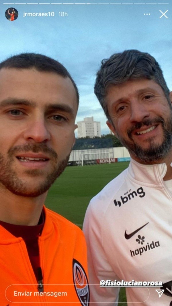 Junior Moraes, do Shakhtar, trata lesão de joelho no Corinthians com fisioterapeuta (Foto: Reprodução/Instagram Oficial @jrmoraes10)