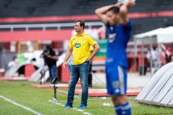 Felipe Conceição observa Matheus Pereira, dono da LE no Cruzeiro, em ação (Foto: Bruno Haddad/Cruzeiro)