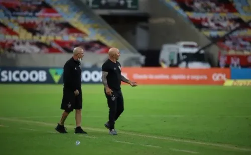 “Sim. A mudança de sistema foi estratégia que pensei antes da partida, levando em conta como se desenrolaria com a bola rolando. O técnico do Flamengo nunca esteve aqui, é muito inteligente, e com certeza nos conhecia muito bem. Tentamos fazer uma avaliação para entender onde estaríamos livre para jogar, como nas costas de Arão”, revelou Sampaoli.