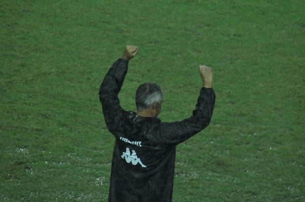 Lisca comemora gol de Sarrafiore em meio a temporal em Salvador (Foto:Jhony Pinho/AGIF)