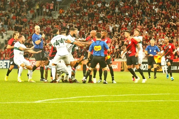 A briga, que envolveu tanto o Coxa, quanto o Furacão,resultou em nove nomes punidos para o restante do campeonato. Do lado do Coritiba, Fabrício Daniel, Alef Manga, Márcio Silva e até o técnico António Oliveira foram expulsos. Já do outro lado, Thiago Heleno, Pedro Henrique, Christian, Pedrinho e Terans não vão poder jogar nos próximos compromissos do Athletico-PR. Nesta segunda-feira (6), a súmula do confronto deu detalhes da confusão.