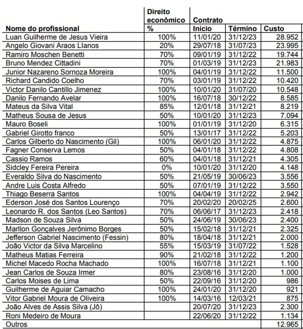 Com os dados tornados públicos, o valor pago na contratação do meia Luan veio à tona, já que tal quantia era apenas apontada como especulação. Para trazer o jogador do Grêmio ao Parque São Jorge, em 2019, foi desembolsado R$ 28,95 milhões. Inclusos o preço de mercado cobrado pelo time gaúcho, e dispêndios como comissões e luvas pagas a Luan. Nas especulação aventadas antes da revelação, o valor hipotético apontado era de R$ 22 milhões.