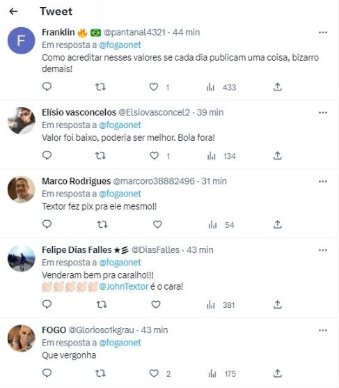 Entretanto, nesta terça-feira (31), a situação pode provocar ainda mais a ira da galera Alvinegra, pois uma mudança nos termos contratuais transformou a negociação em definitivo. Se antes Jeffinho seria cedido por empréstimo, agora a negociação se transformou em definitivo. Inicialmente o acordo previa o empréstimo por 5 milhões de euros mais uma opção de compra de 10 milhões de euros. Mas após uma reviravolta na avaliação do Clube francês, o atacante será comprado em definitivo por 10 milhões de euros (R$ 55,3 milhões, na cotação atual).