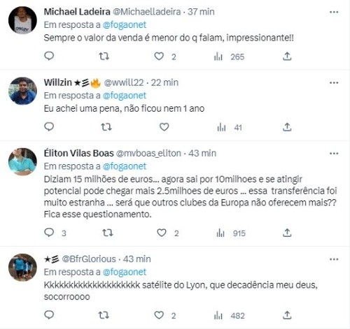 Ao todo, entre a oferta por compra e a possibilidade de bônus determinada, a negociação de transferência de Jeffinho ficará em 12,5 milhões de euros (R$ 69,2 milhões). O Bota tem 60% dos direitos econômicos do jogador e vai embolsar a 7,5 milhões de euros (R$ 41,5 milhões), a outra parte ficará com o Resende, clube que projetou o atacante no futebol.