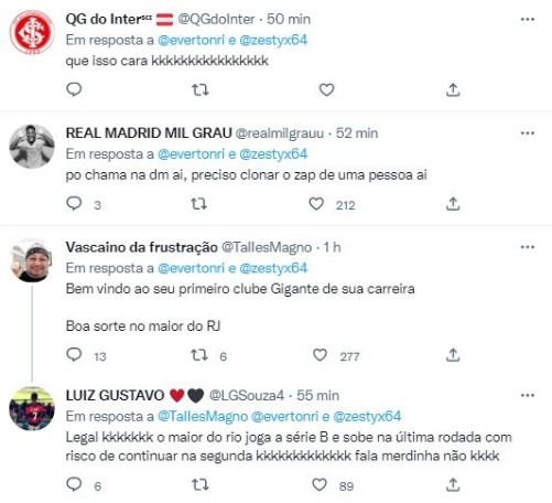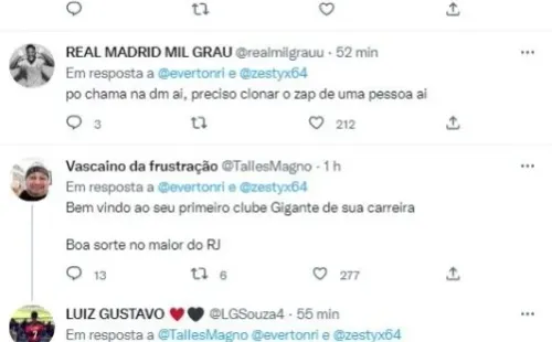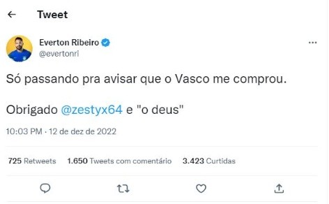 O primeiro perfil a ser ‘hackeado’ foi o de Éverton Ribeiro. Em sua conta do twitter, a postagem dizia: “Só passando pra avisar que o Vasco me comprou. Obrigado @zestyx64 e “o deus”. Foi o bastante para surgir respostas como: “Bem-vindo ao primeiro clube Gigante da carreira”, ou “Finalmente realizando o sonho de atuar pelo maior do Rio de Janeiro”.