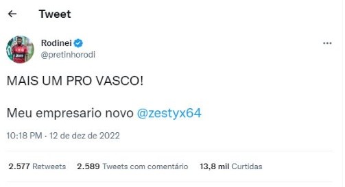 Além de Éverton Ribeiro, outro ex-jogador do rival foi alvo do hacker, Rodinei, teve sua conta invadida e desta forma surgiu a postagem: “Mais um pro Vasco! Meu empresário novo @zestyx64”. Para finalizar, Diego Ribas, que também deixou a Gávea fechou o alvo do hacker, no entanto, apenas a descrição de seu perfil apresentou o status de “jogador do Vasco”.