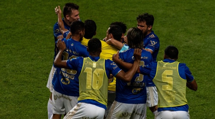 Comemoração dos jogadores do Cruzeiro (Foto: Alessandra Torres/AGIF)