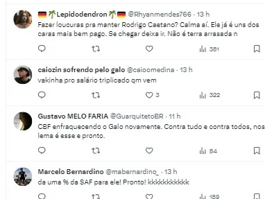 A permanência de Caetano é aprovada por toda diretoria e SAF do Galo, além da torcida que também deseja que ele fique à frente das contratações e no mercado do time mineiro.