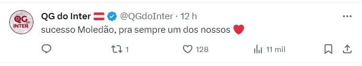 “O Clube do Povo agradece ao zagueiro Rodrigo Moledo por toda entrega, raça e comprometimento com o manto colorado. Moledão participou da conquista de três títulos gaúchos, além da Recopa Sul-Americana em 2011 e 247 jogos vestindo vermelho e branco”.