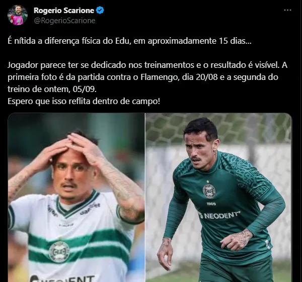 Isso porque, mesmo afundado no Z-4, a direção trouxe nomes de peso para tentar ajudar a evitar a queda. Porém, apesar de todas as contratações do Coritiba nas últimas semanas, um jogador que já está lá há algum tempo vem apresentando uma melhora considerável. Trata-se do centroavante Edu, destaque do Cruzeiro na Série B do ano passado.