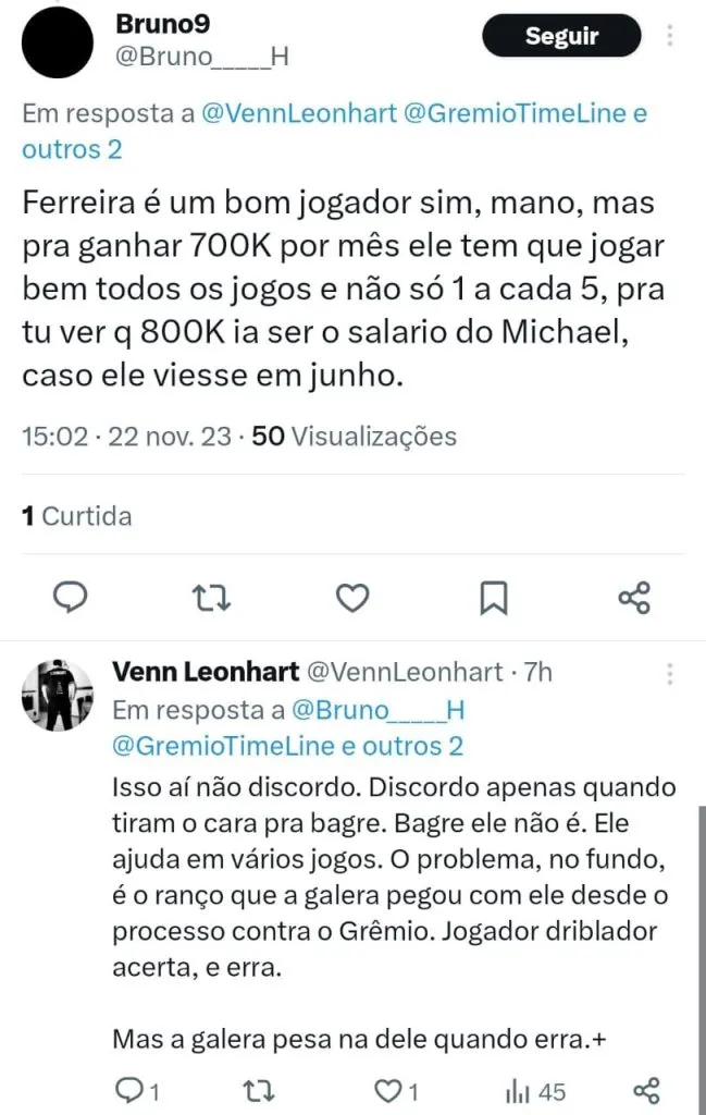 Outro detalhe é que o São Paulo teria opção de compra ao fim do empréstimo com direito a bônus por metas alcançadas. Enquanto pensa nos reforços para a temporada, o Grêmio avaliou a possibilidade de negociar Ferreira.
