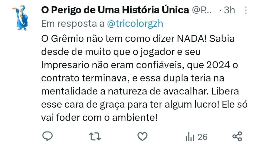 Um dos motivos pelo qual o Grêmio não se interessou pela proposta é porque teria que renovar com o jogador com quem tem vínculo por apenas mais um ano, caso contrário poderia perder o atacante de graça no final do empréstimo.
