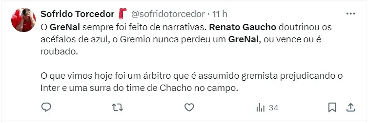 “Eu não sou cego, eu vi os lances, e tudo aconteceu pela falta do VAR, e vai fazer falta em qualquer grande jogo. Os times do interior não têm condições, sem problema. Agora no Gre-Nal sem VAR, deu no que deu”, apontou.