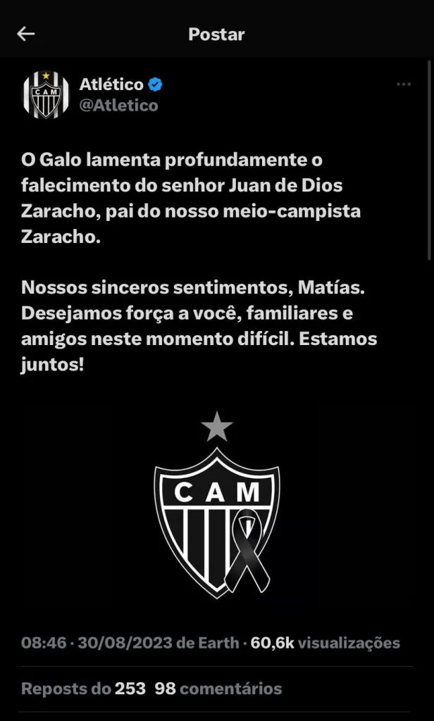 Anteriormente, Zaracho havia perdido o cunhado em um acidente de carro. Ainda não foi informado de forma oficial pelo time mineiro a liberação do atleta, porém, é algo que deve ocorrer de fato. Nas redes sociais, a torcida se mostrou solidária com o ocorrido.