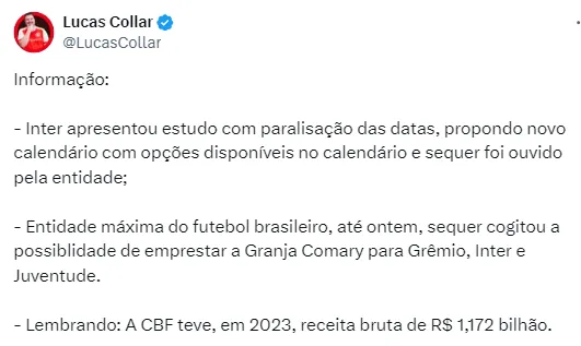 Enquanto isso, a entidade afirmou que irá acatar o pedido dos clubes e irá suspender as atividades do Campeonato Brasileiro, conforme a primeira manifestação de Ednaldo Rodrigues.