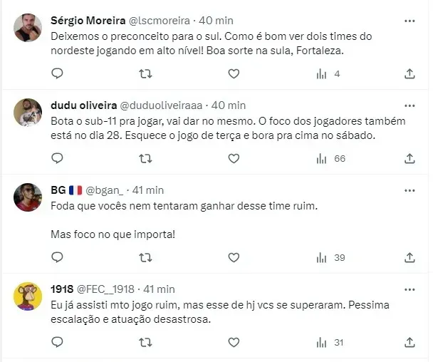 Torcida do Fortaleza reclama de derrota nas redes sociais