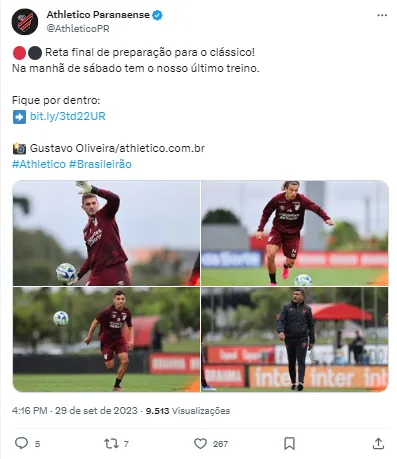 O atacante Vitor Bueno é desfalque assim como Pablo, suspensos. Já o lateral-direito Madson e também o atacante Vitor Roque, que estão lesionados, ainda seguem fora. Segundo informações do Globo Esporte, Bruno Peres, Alex Santana e Willian Bigode entram na equipe atleticana. Além de Bento, recuperado de lesão na coxa, volta.