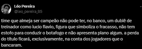 Lúcio Flávio, no entanto, rebateu a pressão, afirmando que as opiniões externas, por mais impactantes que possam ser, não vão mudar a mentalidade e o comprometimento do Botafogo.