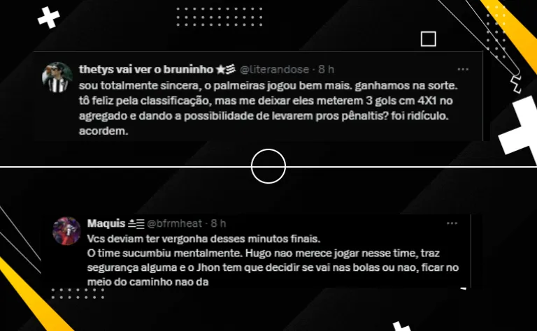 Em um confronto muito emocionante, que durou até o último minuto, o Botafogo eliminou o Palmeiras nas oitavas de final da Copa Libertadores da América. Depois de vencer na ida por 2 a 1, a equipe garantiu a classificação com um empate em 2 a 2.