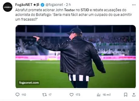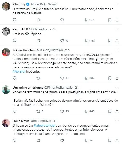 Textor começou suas manifestações no gramado do Estádio Nilton Santos e acabou fazendo um longo texto, apontando “corrupção” no futebol brasileiro. Entretanto, a ira do comandante da SAF chegou na Associação de Árbitros de Futebol do Brasil (Abrafut), que se posicionou.