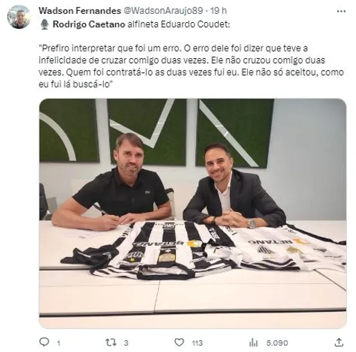 “Saibam também que quando nós renovamos o contrato dele, ele aceitou, o clube propôs e ele aceitou a redução de salário para ficar aqui porque se sentia bem. Ele não está jogando muito por conta dos nossos dois atacantes estarem fazendo um grande ano”, declarou Rodrigo Caetano.