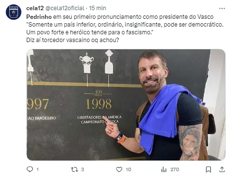 Nas palavras do jornalista, cobrar sobre o futebol do Vasco será a principal demanda nesta participação de Pedrinho no conselho administrativo. Conforme se moldou a campanha do ídolo, pode se afirmar agora o Cruz-Maltino terá a voz do torcer institucionalizada.