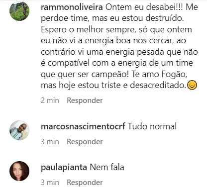 Diversos torcedores da equipe utilizaram a publicação para desabafar sobre a situação alarmante do Glorioso. Atualmente ocupando a segunda colocação do Campeonato Brasileiro com 63 pontos, a equipe perdeu a oportunidade de diminuir a vantagem para o líder e ir em busca do título.