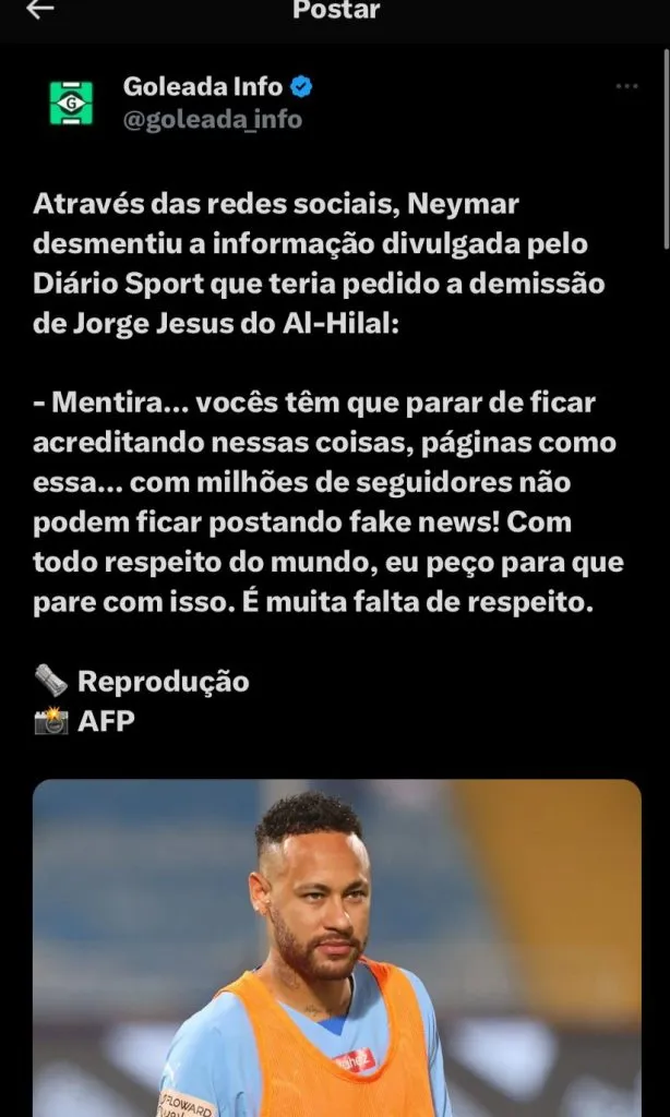 Após ser noticiado que Neymar teria pedido a demissão de Jorge Jesus, o brasileiro se pronunciou