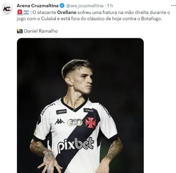 “O atacante Orellano sofreu uma fratura na mão direita durante o jogo com o Cuiabá”, publicou o clube em suas redes sociais pouco tempo depois.