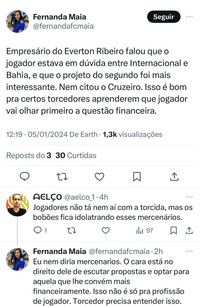 O empresário do meia-atacante, Carlos Eduardo Baptista deu entrevista para a Rádio Globo e ao longo da conversa, o representante de Everton Ribeiro confirmou que o Inter fez uma boa proposta, mas apontou um possível futuro no Grupo City como o motivo para a opção pelo Bahia.