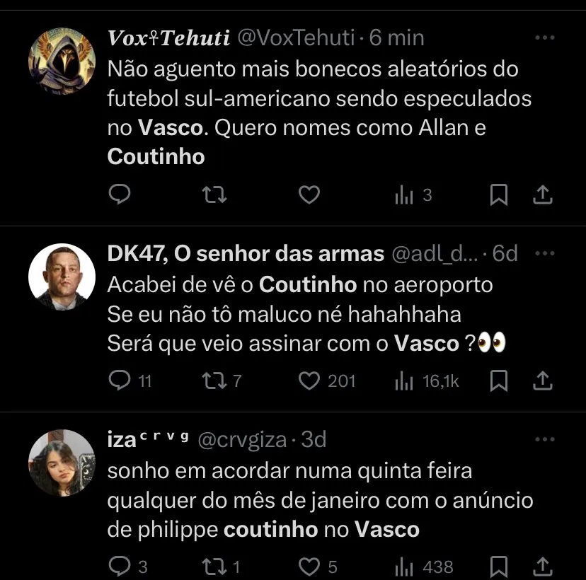 ALém dos citados, há um nome que poderá agitar os bastidores vascaínos. Um velho conhecido um sonho antigo da torcida: Philippe Coutinho, cria da base vascaína.