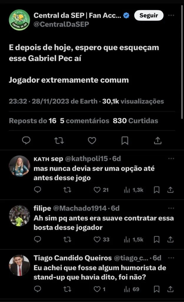 Veja o que dizem os torcedores sobre Pec: