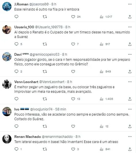 Não bastasse a derrota, o Grêmio arrumou um problema resultante da partida, já que teve o lateral-esquerdo Reinaldo expulso de campo. O fato coloca em xeque a escalação para o duelo de sábado (21), contra o São Paulo, no Morumbi. Isso porque as notícias sobre quem poderá ser acionado na vaga deixada pelo camisa do Imortal preocupam a caserna gremista. O principal ponto do impasse está em Cuiabano.