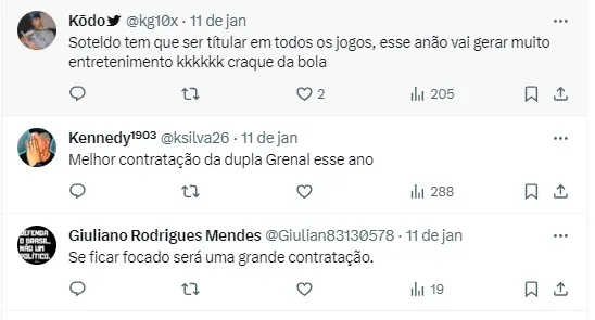 Isso porque de acordo com a jornalista Fabíola Thiele, do Portal do Gremista, sua coletiva de apresentação iria ocorrer nesta quarta-feira (17), mas isso acabou mudando de última hora.