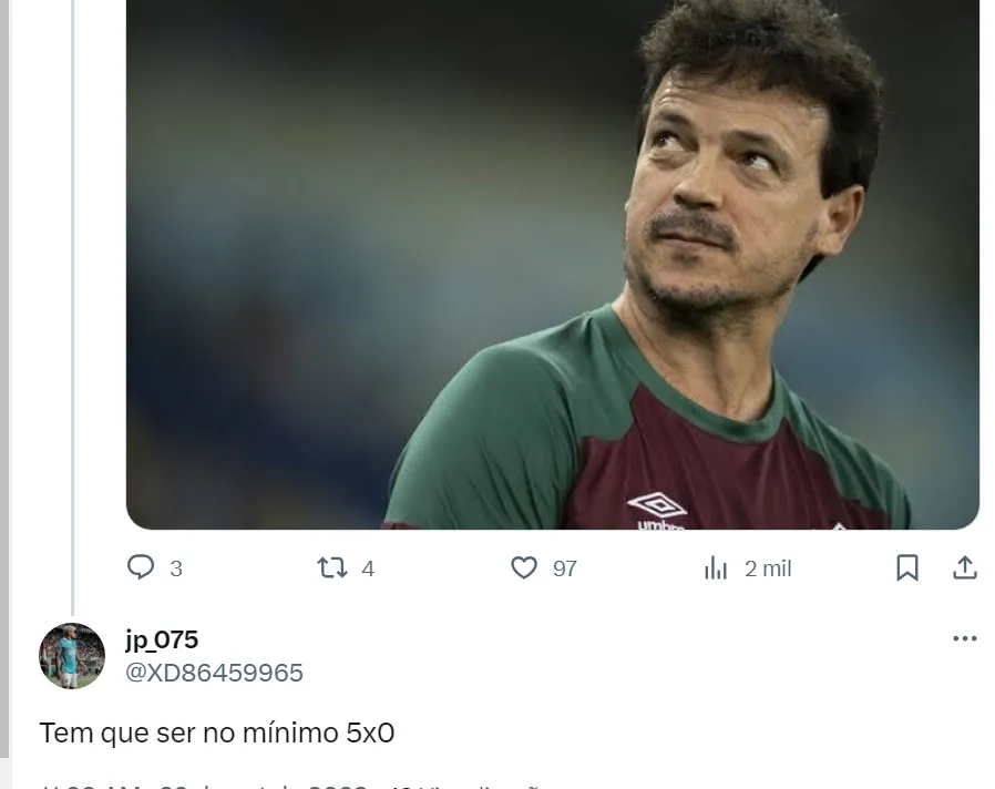 No Twitter, muitos torcedores do Bahia estão afirmando que o jogo contra o Fluminense é para o time de Rogério Ceni conquistar saldo e ganhar de goleada. Atualmente, o Esquadrão está com saldo de gols negativo.