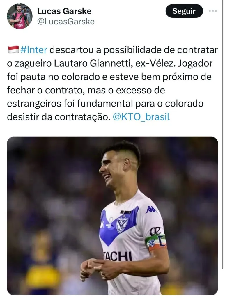 “Houve negociações avançadas com o Inter, mas nada foi finalizado ainda. O jogador tem chance na Europa e, quando voltar das férias, nos reuniremos para definir seu futuro”, revelou o seu agente ao jornalista César Luis Merlo, da Argentina.
