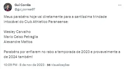 Alexandre Mattos vem fazendo um bom trabalho no Athletico Paranaense. Além de ter conquistado o vice-campeonato da Libertadores em 2022, o dirigente ainda trouxe nomes importantes ao Furacão como Fernandinho, por exemplo. O dirigente é o braço direito de Mário Celso Petraglia no momento.