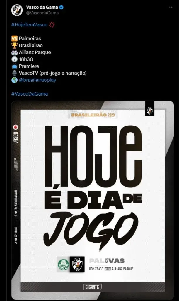 Este ano e atuando no Maracanã, as equipes se enfrentaram no turno, o Vasco chegou abrir 2 x 0, mas o Palmeiras foi buscar o empate. Agora o Time de Abel Ferreira quer seguir na caça ao líder Botafogo, enquanto o Gigante da Colina está no Z4 e luta para evitar outra queda para a Série B.