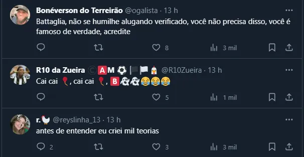 Torcedores do Galo comentam post de Battaglia