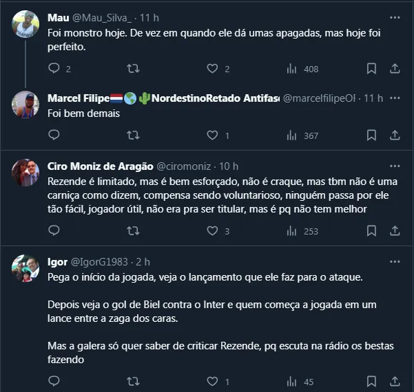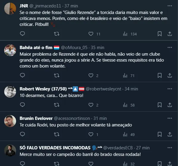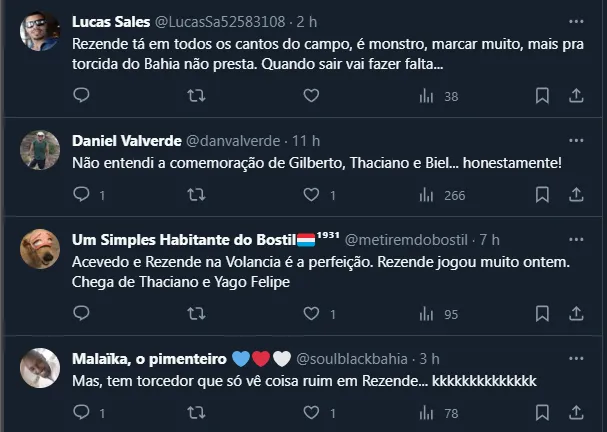 Vale frisar que, por mais que alguns jogadores do plantel do Bahia tenham feito uma partida ruim, um atleta que se destacou e chamou a atenção foi o volante Rezende, que disputou 26 partidas até aqui no Brasileirão.