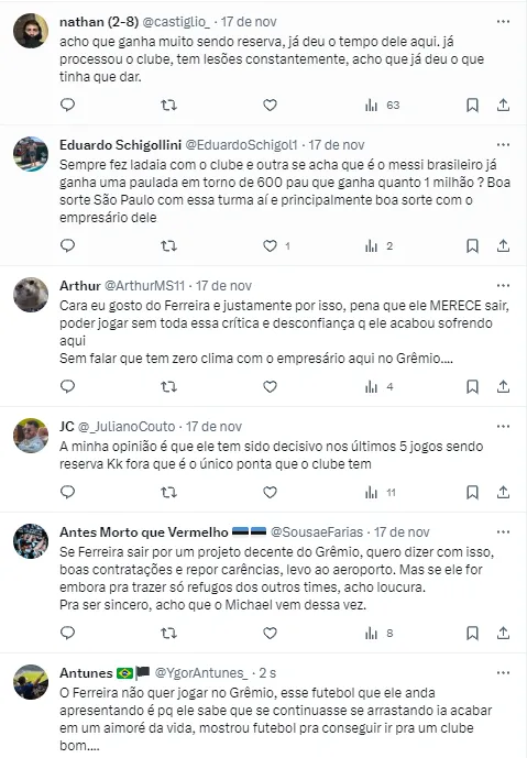 Apesar do atacante receber críticas no Rio Grande do Sul, a torcida do São Paulo recebeu muito bem a notícia. Na capital paulista, Ferreirinha já é tratado como uma chance do Tricolor do Morumbi voltar com tudo para as disputas continentais.