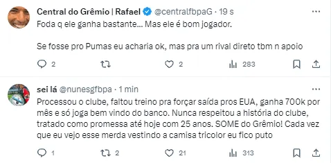 Torcida do Grêmio repercute notícia