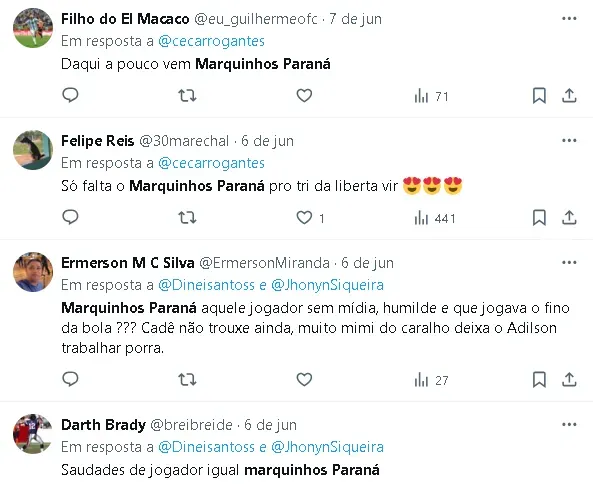 Segundo apuração da Itatiaia, Adilson Batista ligou pessoalmente para Marquinhos Paraná, que se mostrou receptivo à ideia. O ex-jogador, que brilhou na Raposa entre 2008 e 2011, aguarda agora um retorno do clube para saber se as negociações avançarão. Marquinhos Paraná demonstrou interesse em voltar ao clube onde construiu uma parte significativa de sua carreira.