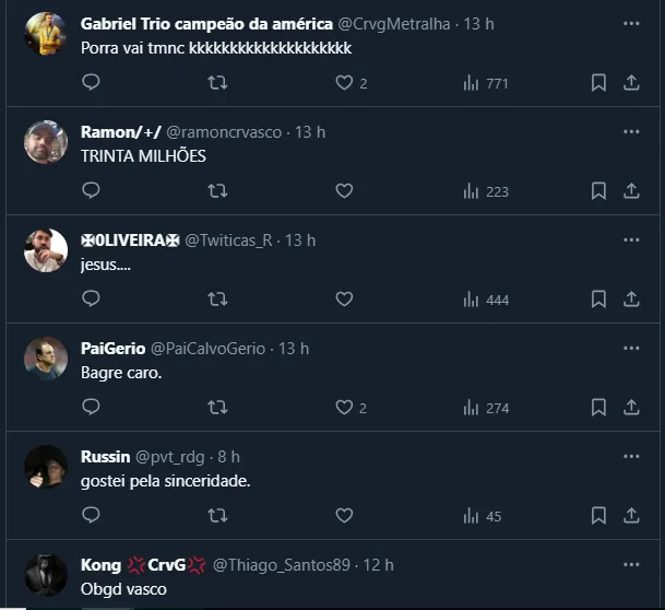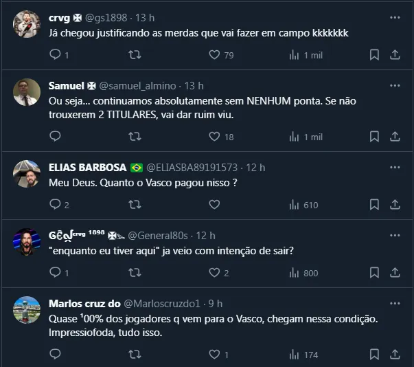 Entretanto, apesar da fala do meia exaltando o executivo do Vasco e o tamanho do Clube, o assunto não caiu bem. Alguns torcedores não gostaram da declaração sobre o ritmo de jogo e criticaram a chegada do atleta.