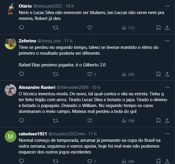 É interessante frisar que, após o resultado negativo diante do torcedor cruzeirense, Larcamón precisou dar respostas pela primeira vez neste cenário. Na coletiva, ele não poupou as palavras e revelou o que é preciso mudar: