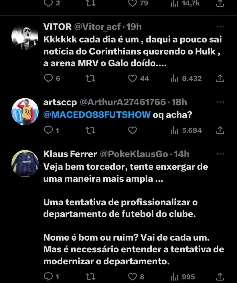 Apesar de ser um dos favoritos, ainda não há nada decidido, além do dirigente atleticano, outros nomes estão na lista montada por Melo, que pretende ter uma conversa com todos. Ainda de acordo com a Itatiaia que entrou em contato com a oposição do Corinthians, Augusto Melo visa uma diretoria de futebol composta por um diretor estatutário, um executivo e um ex-jogador, que neste caso pode ser de Chicão, ex-jogador do time paulista.