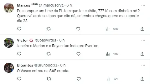 O reflexo direto da notícia no Brasil foi um movimento de alerta aos adeptos ingleses. Torcedores do Vasco passaram a avisar aos apaixonados do Everton que o time pode ser rebaixado da Premier League com a administração da 777 Partners. O alerta serve também para a Série A do Brasileirão, onde o Gigante da Colina ocupa a 18ª colocação, com apenas 21 pontos. Momentos tensão unem fãs de futebol no Rio e na cidade de Liverpool.