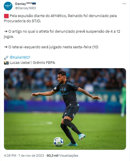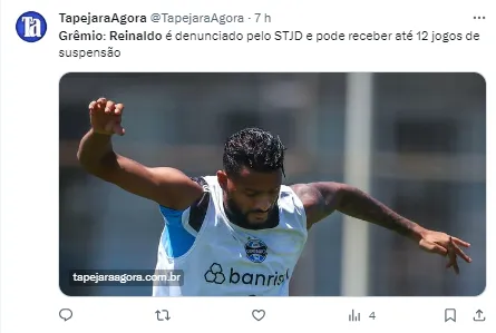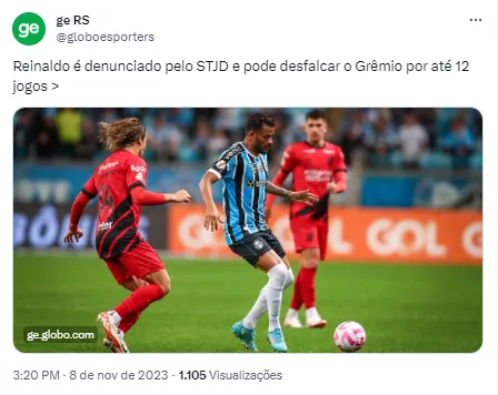De acordo com o artigo 254-A do CBJD, Reinaldo “praticar agressão física durante a partida, prova ou equivalente”. A informação foi repercutida pelo Globo Esporte e agora preocupa a torcida do Grêmio