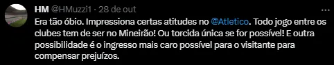 Os torcedores cruzeirenses alegaram revolta devido à falta de portas nos banheiros femininos, além da falta de papel higiênico e sabonetes líquidos nas instalações. O Cruzeiro, em suas redes sociais, se manifestou em repúdio à recepção oferecida pelo Atlético aos torcedores visitantes.